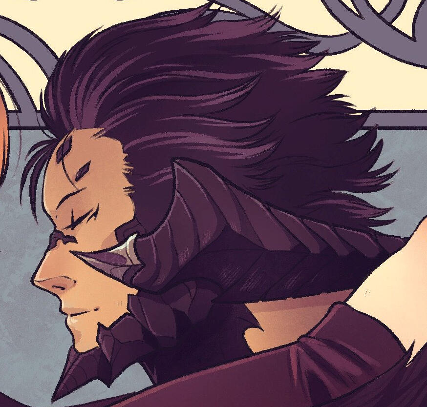 Ganz has a biiiiiig sword, and is a paladin of Nhaama and Azim who calls on celestial power and that of the gods when he uses aether. As a bonus, resting bitch face!